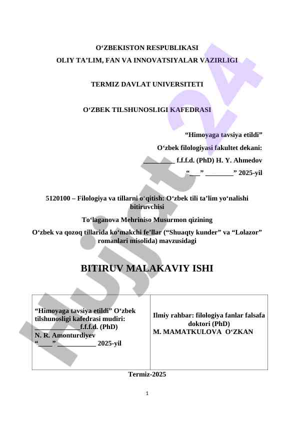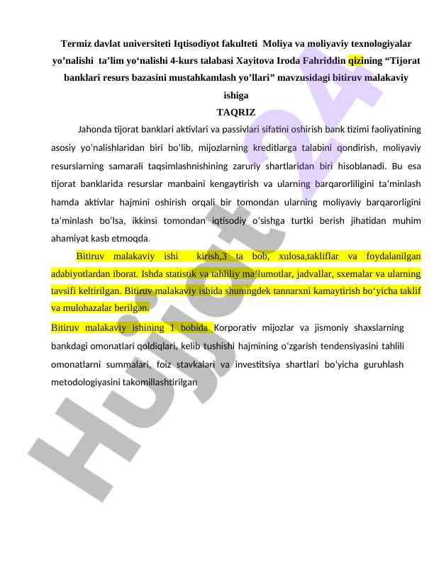 Bitiruv malakaviy ishiga taqriz