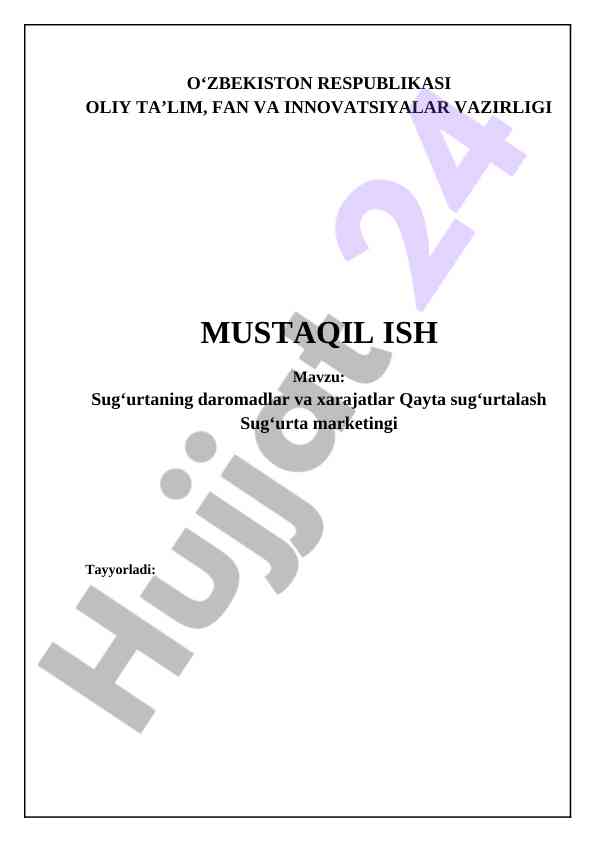 Sug‘urtaning daromadlar va xarajatlari