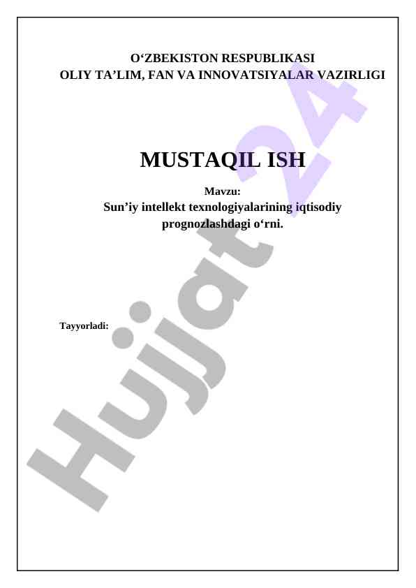 Sun’iy intellektning iqtisodiy prognozlashdagi o‘rni