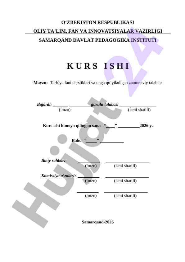 Tarbiya fani darsliklari va unga qo‘yiladigan zamonaviy talablar KRS ISHI