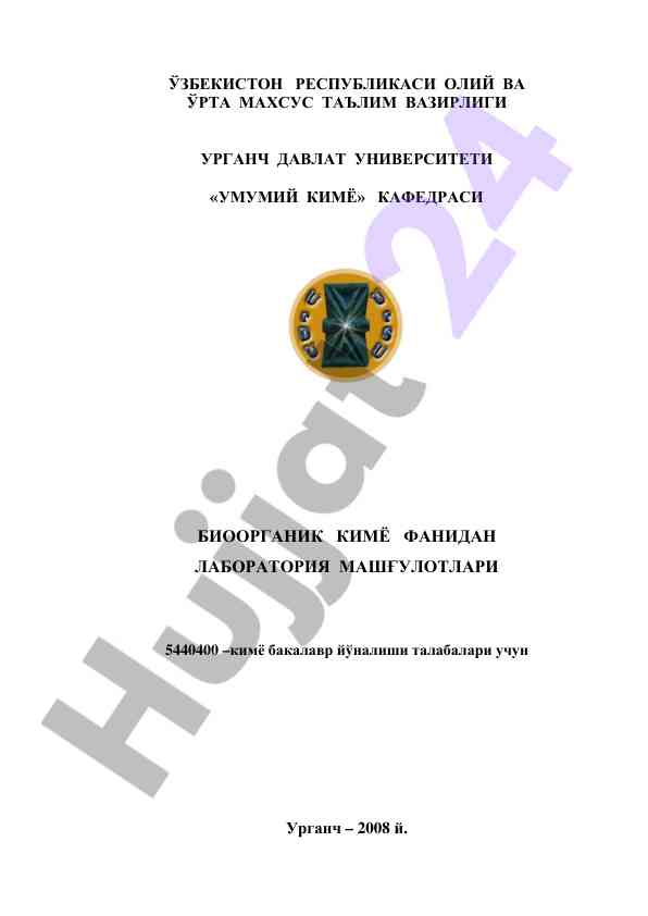 Bioorganik kimyo fanidan laboratoriya mashg‘ulotlari