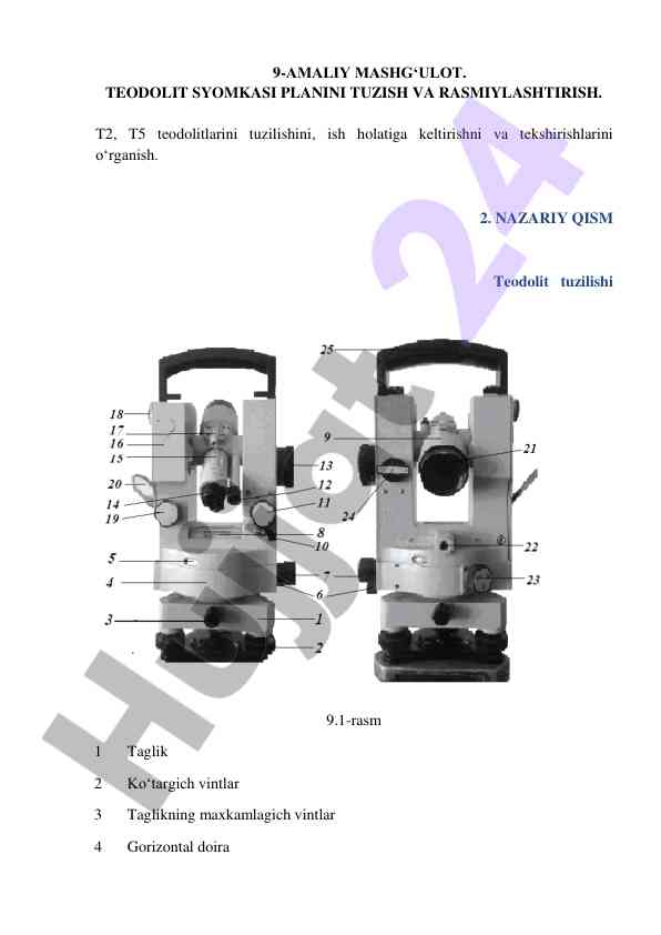 Teodolit syomkasi planini tuzish va rasmlashtirish