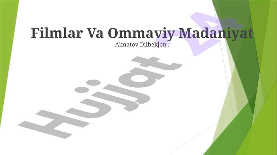 Filmlar va ommaviy madaniyat o'rtasidagi munosabatlar, unda yoritilgan qadriyatlar va ijtimoiy normalar haqida tahlil. Ommaviy axborot vositalarining roli va madaniy tarqalishdagi ahamiyati.