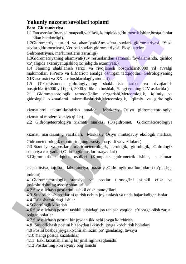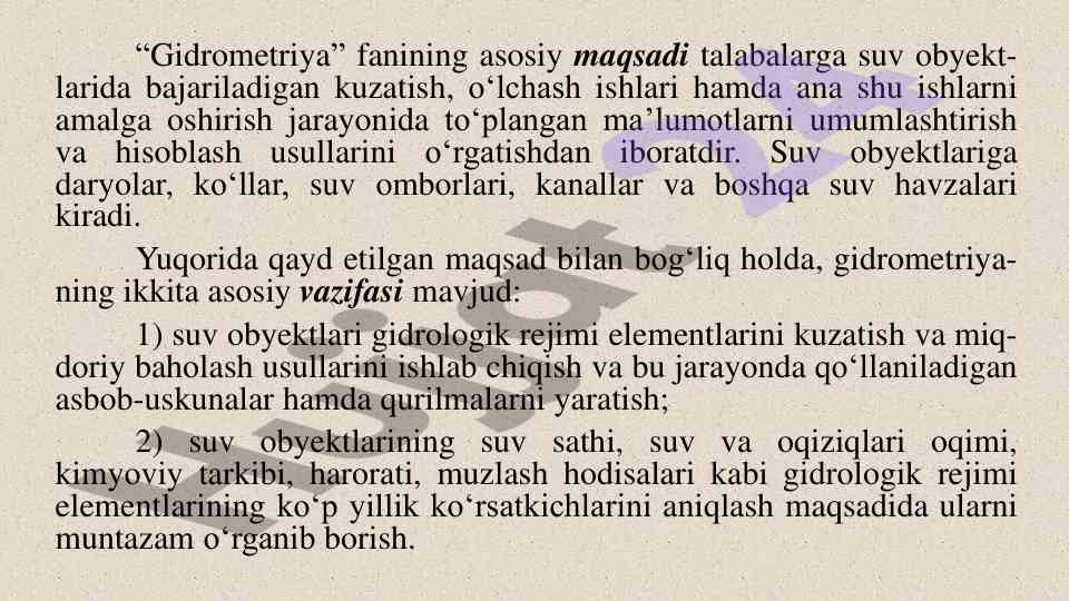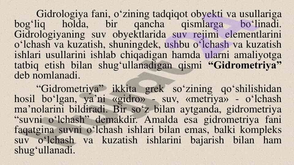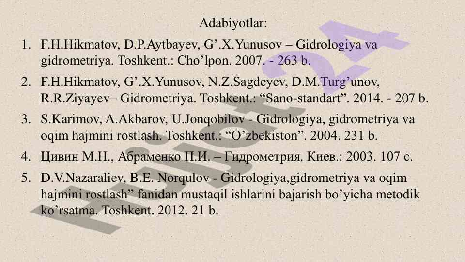 Gidrometriya fani materiallari va mavzulari