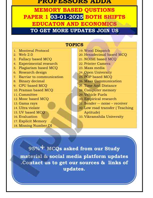 A comprehensive question paper focusing on memory-based MCQs for education and economics, including key topics and updated information for students preparing for exams.