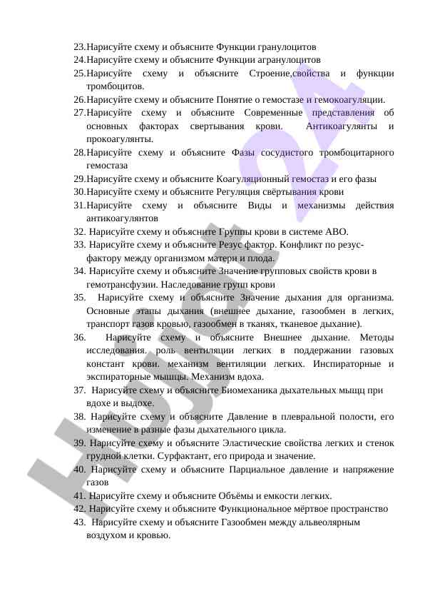Промежуточные вопросы по физиологии крови