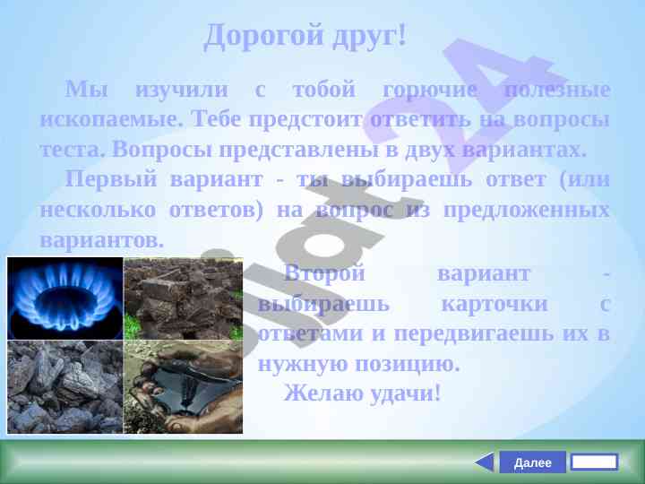 Тестирование по теме горючие полезные ископаемые для 6 класса содержит вопросы и задания для проверки знаний учеников в области природоведения.