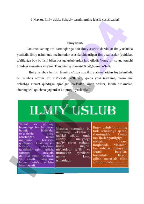 Ilmiy uslub: sohaviy terminlarning leksik xususiyatlari
