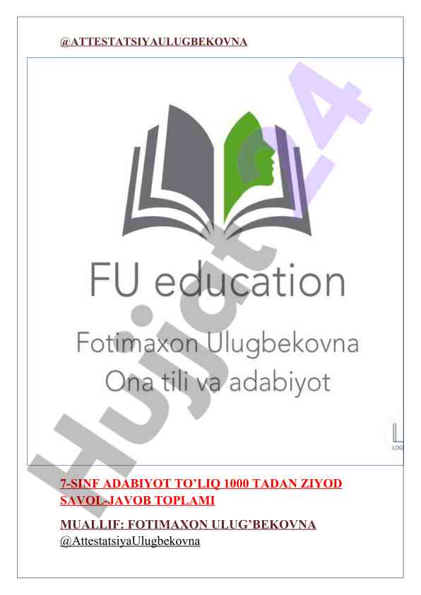 7-sinf adabiyot to‘liq savol-javob toplami