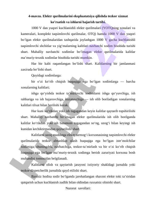 Elektr qurilmalarini ekspluatatsiya qilish tartibi