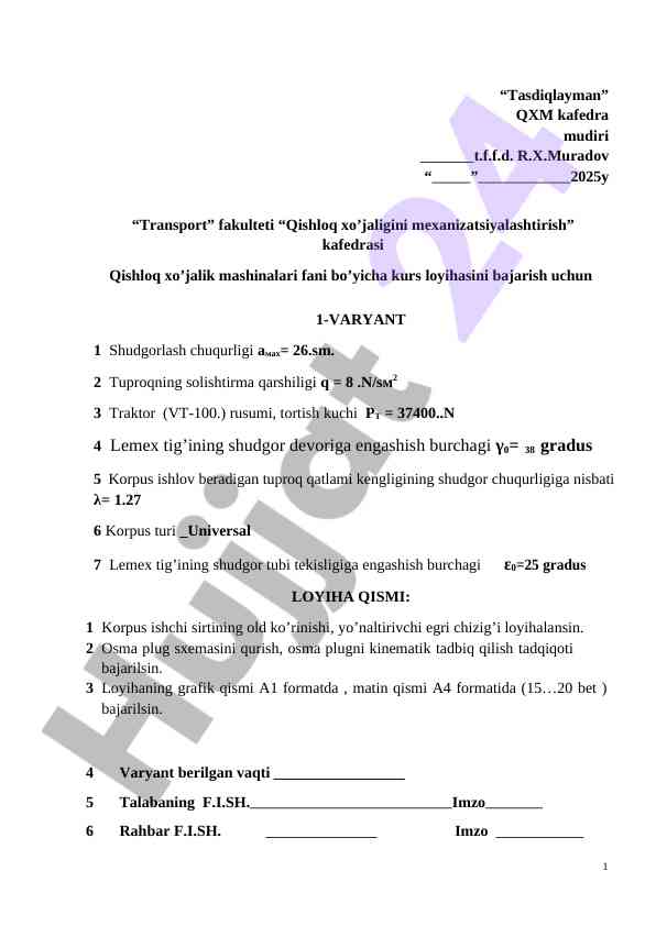 Qishloq xo‘jaligini mexanizatsiyalashtirish yo‘nalishida talabalar uchun amaliy mashg‘ulotlarni bajarish bo‘yicha uslubiy ko‘rsatma, qishloq xo‘jaligi innovatsion texnikalari va texnologiyalari doirasida ishlab chiqilgan.